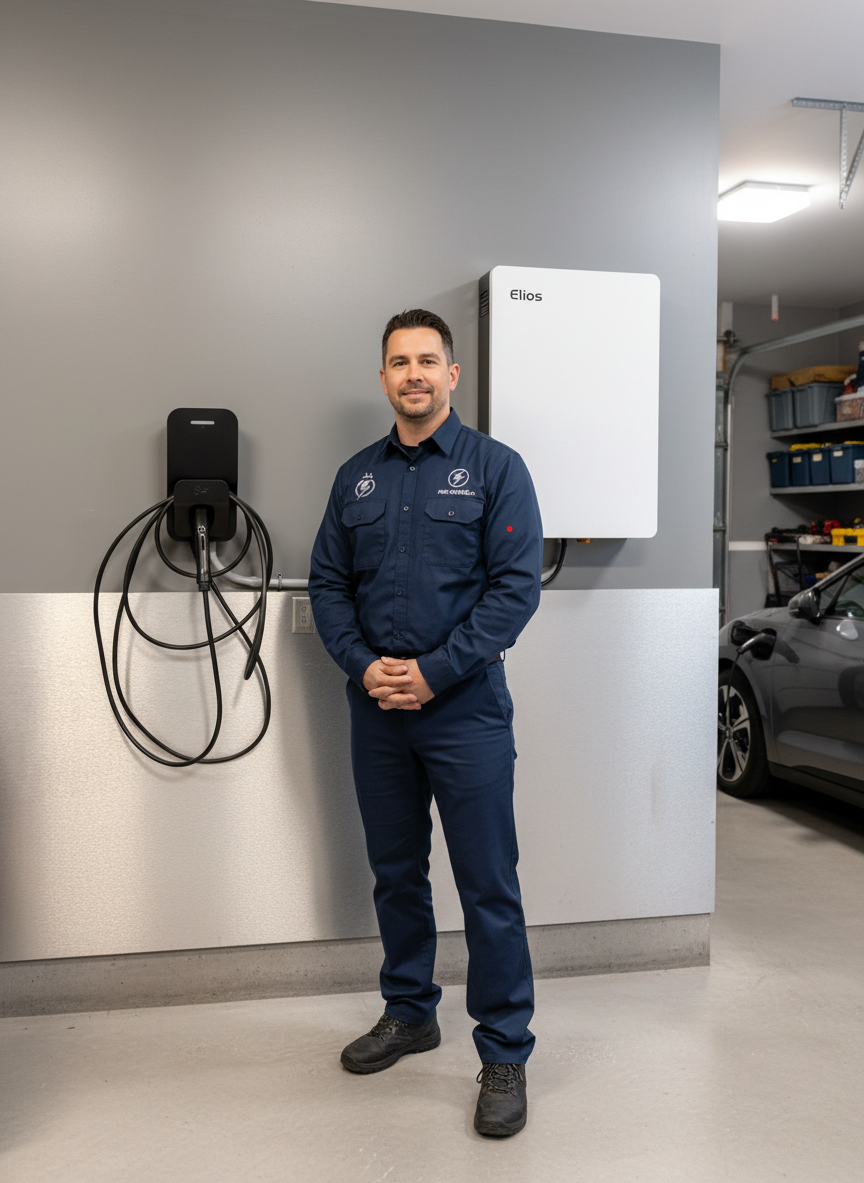 Une installation standard prend entre 2 et 4 heures : disjoncteur dans le panneau, câblage, fixation et mise en service. Pour des projets plus complexes (condo, câblage long, mise à niveau de panneau), comptez 4 à 8 heures. La durée est toujours confirmée lors de la soumission.